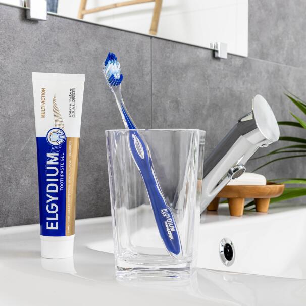 Елегантният и изискан външен вид на ELGYDIUM Inspiration четка за зъби ще подхожда на вашата баня. Съчетание на технологии и дизайн, което освен безупречен профил осигурява и оптимална хигиена. Тънката глава и фино заоблените влакна, с различна дължина, улесняват почистването. Ергономичната дръжка, с цветна ивица, прави ELGYDIUM Inspiration четка за зъби изключително привлекателна.