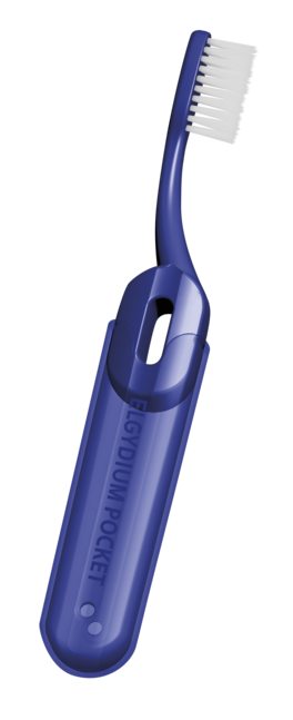ELGYDIUM Pocket Сгъваема четка за зъби е проектирана така, че да бъде възможно най-ергономична. Можете да я носите навсякъде, от офиса до самолета, от фитнеса до ресторанта. Здравата ѝ дръжка осигурява добро захващане, затварянето ѝ позволява да я носите навсякъде безопасно и хигиенично, а малките отвори за вентилация осигуряват добра циркулация на въздуха, без да се замърсяват косъмчетата.