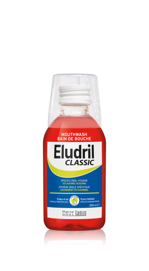 Със своето успокояващо и антибактериално действие, водата за уста Eludril Classic спомага за поддържане на добра орална хигиена след пародонтално лечение или в допълнение към него, както и при специфични ситуации като: раздразнени и кървящи венци, най-честата причина за което е натрупването на плака , носене на ортодонтски апарати или при поставяне на импланти. Eludril Classic спомага за поддържането на добра орална хигиена, намалява дискомфорта при раздразнени венците и се бори с натрупването на зъбна плака. В състава на Eludril Classic влизат хлорхексидин диглюконат (0,10%), съставка с добре познати антибактериални свойства, и хлоробутанол (0,5%). Подходящ е за възрастни и деца от шест години.
