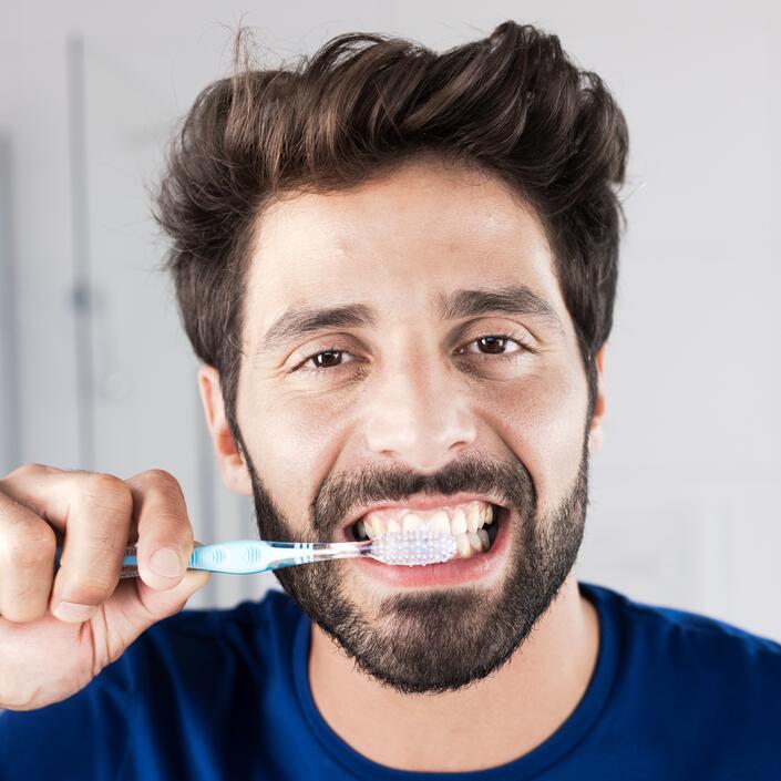 Il est recommandé de se brosser les dents après chaque repas, 2 à 3 fois par jour, pendant 2 minutes, avec un dentifrice spécifique, par exemple ELGYDIUM Blancheur.