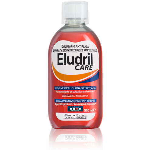 Frescura e satisfação: sensações que se encontram na boca, todos os dias, e que contribuem para uma excelente higiene oral, graças ao digluconato de cloro-hexidina e ao cloreto de cetilpiridínio com propriedades purificantes e antiplaca. Com uma redução de 74,9%¹ no índice da placa bacteriana em 3 semanas, o colutório Eludril Care é usado duas vezes por dia para que os utilizadores se sintam bem consigo próprios e na companhia de outras pessoas! Usado de manhã e à noite depois da escovagem, ajuda a manter gengivas e a boca saudáveis. Possui uma embalagem em plástico PET 100% reciclável e tem uma bonita cor vibrante que nos faz sorrir todos os dias! Com o certificado "Origine France Garantie" (Origem Francesa Garantida), é adequado para usar no seguimento de cuidados profissionais. Adequado a utilizadores de aparelho e crianças a partir dos 6 anos.